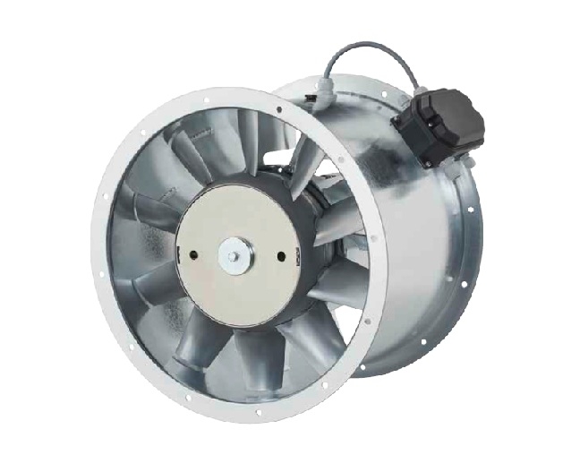 Közvetlen meghajtású ventilátor, légszállítás iránya a járókeréktől a motor felé nyomó. Függőleges és vízszintes beépítésre is alkalmas. Normális időjárási körülmények között a szabadban felállítható helyben kiépített csapó eső elleni védelemmel.